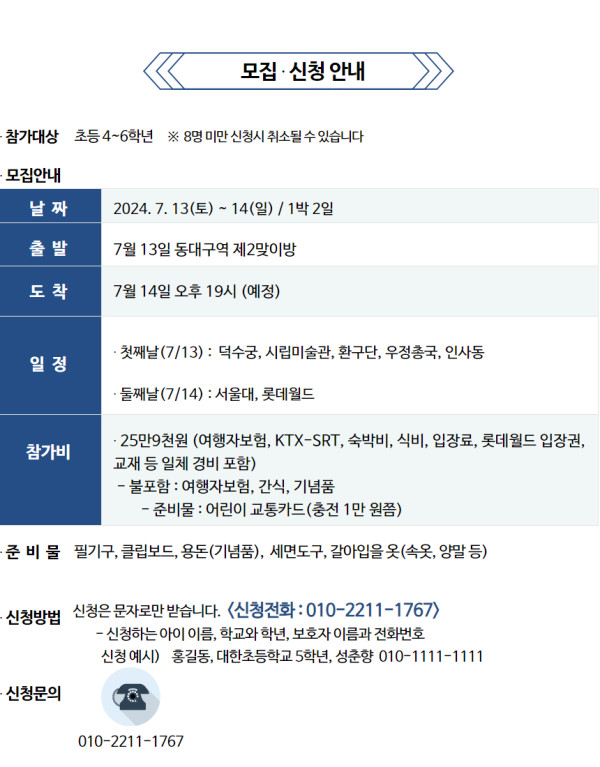 - 서울 배낭여행 날짜 : 2024년 7월 13일 ~ 7월 14일(1박 2일)