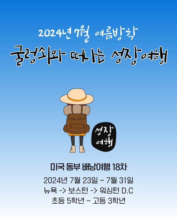 굴렁쇠 미국 동부 자기주도여행 18차 (2024년 7월 23일 출발 )