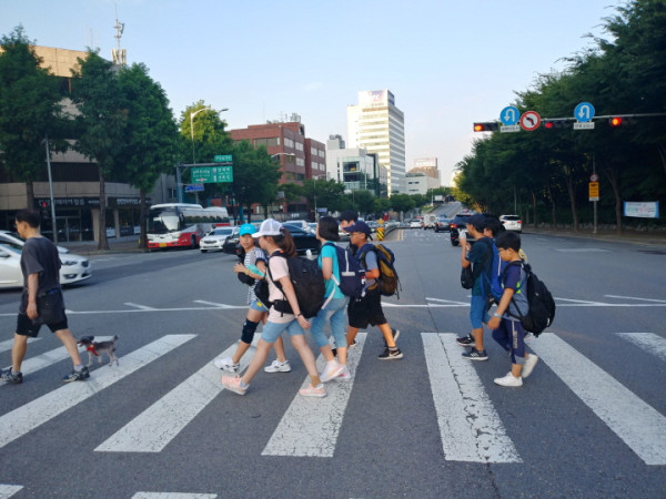 피곤한 오늘 아침도 씩씩하게 걸어갔답니다.